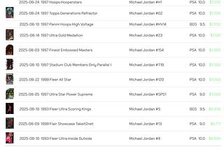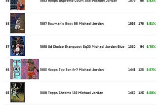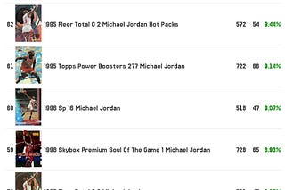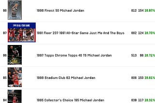 100 Worst PSA Gem Rated Common Michael Jordan Cards and a sales volume report to show what cards are selling the most